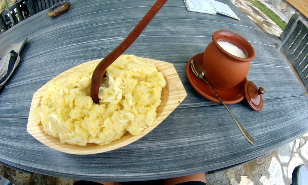 Neyse, yine uzattım sdkjfls. Lokantaya girdim ve adı değişik göründüğü için Kaçamak diye bir yemek söyledim. Kahvaltı yapıyorum hesapta ama ne olduğunu bilmediğim bir şey söylüyorum. Kocaman tabakta bir et bile gelebilirdi dsjfds. Et gelmedi ama kocaman ama gerçekten kocaman bir tabakta patates püresi sandığım ama gerçekte mısır unu olan ve bol peynirli bir yemek geldi. Vat ta hel dedim ama kimseler duymadı. Arkadaş, o kadar büyük ki, biz onu hanımla birlikte bitiremeyiz, yarısını da eve götürür üç gün yemek yapma derdi kalmadı falan diye de baya bir seviniriz sduıfsd. Tamamını yiyemedim tabi. Yanımda uygun bir kap olsaydı geri kalanı bırakmazdım orada. Baya da güzeldi yani.
