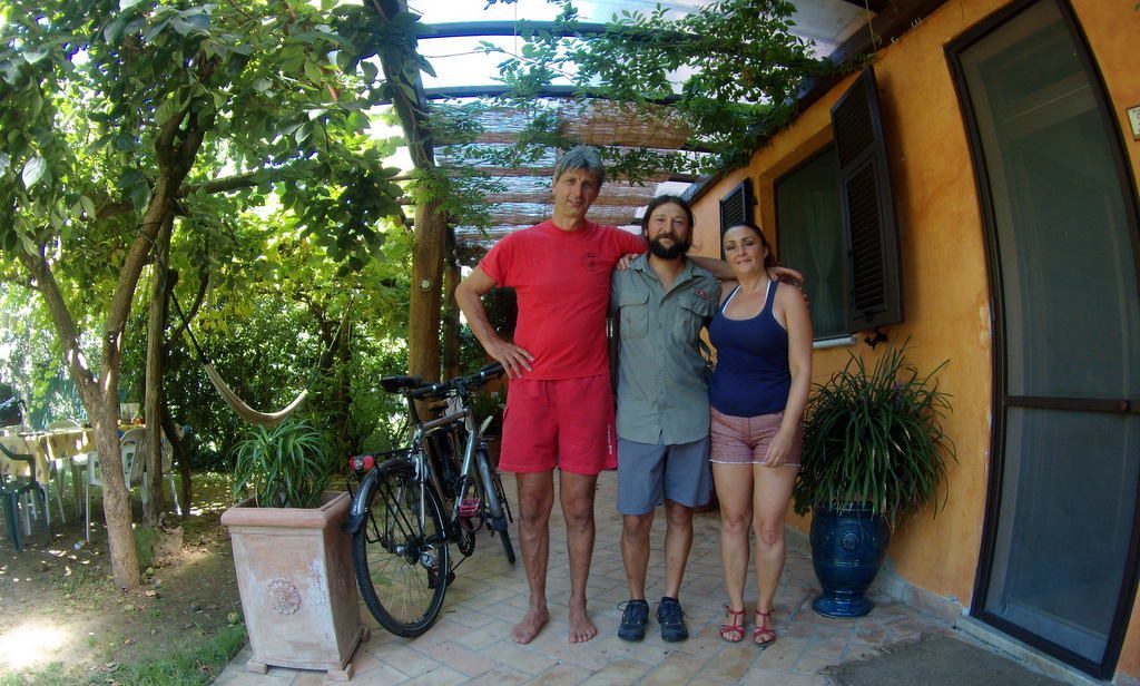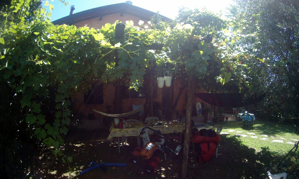 Ben ona doğru, o bana doğru yola çıktı ve yolda buluştuk. Valter da uzun turlar yapan bir adam. Daha önce Afrika’da bile pedallamış. Onu takip edip evine ulaştık. Ev dediğim de ev değil, resmen hayallerinizde kurabileceğiniz en ideal yapı. Muhteşem bir bahçe, muazzam bir ev. Bahçeye duş sistemi kurmuş, sen burada duşunu al, ben geliyorum dedi. Bahçede sıcak suyla güzel bir duş aldım. Duş bittikten bir süre sonra Valter geldi. Biz bahçede oturup muhabbet ederken, eşi Marinella da müthiş bir akşam yemeği hazırladı. Marinella. İsmin zerafetine bak arkadaş. Kendisi de bir o kadar zarif ve tatlı bir insan. Konuşurken kırılacak adeta.