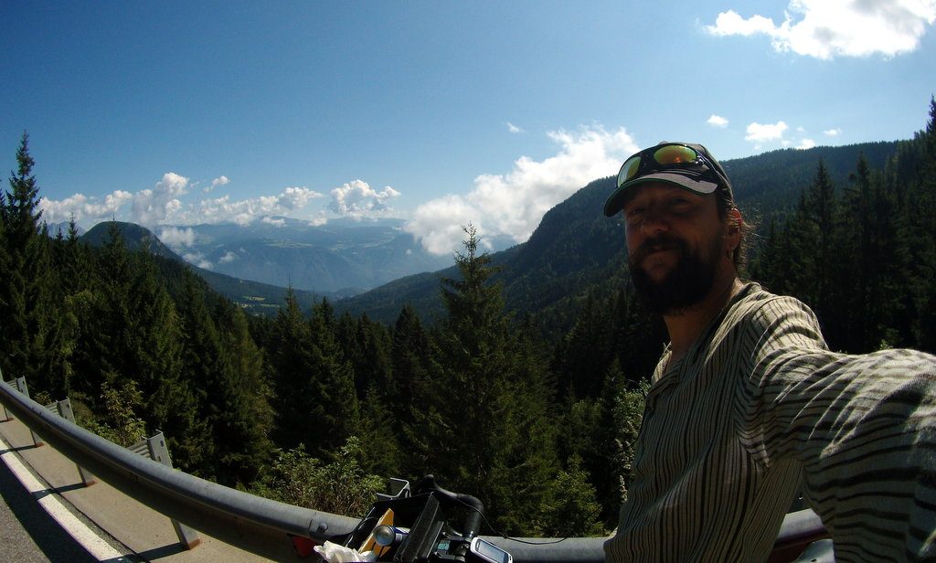 Ertesi sabah kalkıp, açık büfe kahvaltımı gömdüm. Bu tarz pansiyonlarda falan kalmanın en güzel yanı açık büfe kahvaltısı. Bir bisikletçiyi doyuramazsınız çocuklar dsaıhfsd. Hem bisikletçi, hem Türkiyeli. Adam bisikletçi olması nedeniyle zaten doymuyor, bir de Türk olmanın vermiş olduğu “o parayı çıkarma” dürtüsü var sdfhsd. Dördüncü tabağı koyarken otel görevlileri tarafından yaka paça dışarı atıldım sdaıuf. Şaka lan. O kadar yemem ben. Yedim ama o kadar yemedim. Şu kadar yedim. Neyse. Kahvaltı sonrasında yola koyulup, yarıda kalan zirve tırmanışını bitirmek için tırmanmaya başladım. Çok bir mesafe kalmamıştı ama yine nereden baksan 7 kilometre boyunca tırmanıp, 1534 metredeki Passo Palade geçidine ulaştım. Zirveye ulaştığımda scooter motorlarla gezen amca ve teyzelerin yoğun takdirlerini kabul ettikten sonra, bir süre sonra fren sıkmaktan ellerimi hissettirmeyecek kadar uzun olan inişten Merano’ya doğru inerek rakımı tekrar 280 civarına kadar düşürdüm.